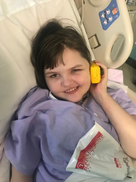 Katie was admitted Thursday evening and we came home yesterday. She had CT scans, bloodwork, an upper GI, and EEG monitoring the entire time of her stay. I think about 50 doctors and interns and residents came in our room while there. I know it’s a teaching hospital but if I had to retell medical history way more than necessary. There was a lot of holding her down getting the upper GI and EEG leads on. As her brother would say “she is freakishly strong”. Thankfully she forgives easily and doesn’t carry a grudge. We captured one of her typical seizures on the EEG. Of course, she didn’t throw up once the entire time there.